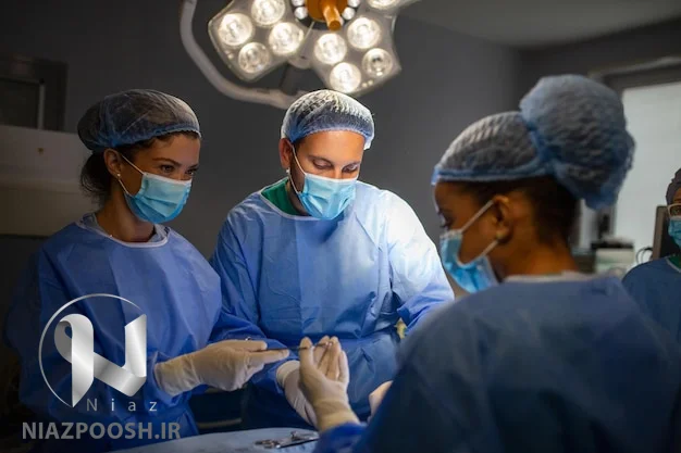طراحی لباس استریل انتخاب شده از نیازپوش به طور موثر از گسترش میکروارگانیسم ها از اعضای کارکنان به زخم های باز روی بیمار جلوگیری می کند.