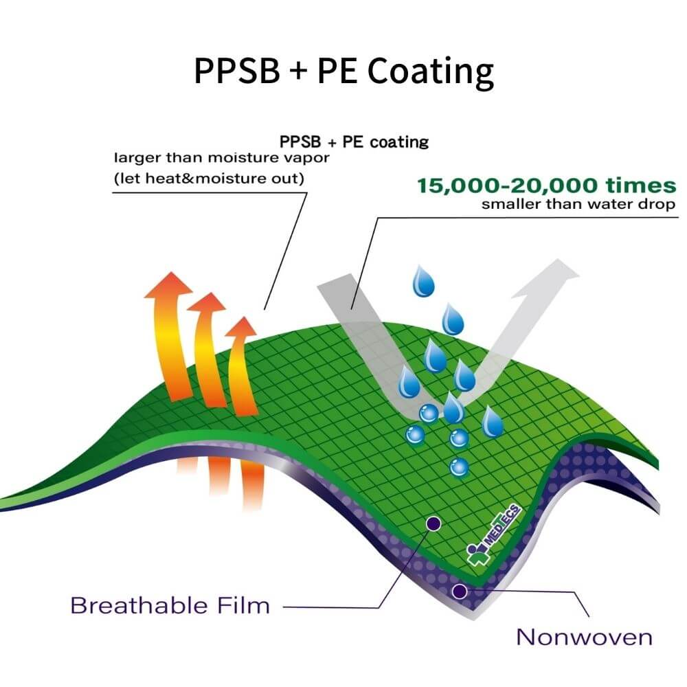 Spunbond پلی پروپیلن با پوشش پلی اتیلن (پوشش PPSB + PE)