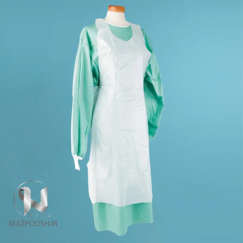 پیش بند یکبارمصرف نیازپوش تولید شده از مواد باکیفیت و نو پلی اتیلن برای انعطاف پذیری عالی، مقاوم در برابر روغن و چربی است.